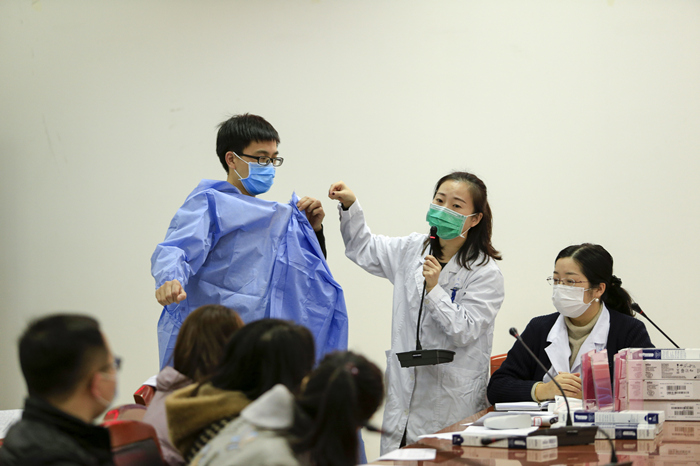 为保证近300名志愿者工作的正常开展和个人安全,医院团委工作人员全部取消休假,每天从早上8点到晚上8点,负责三个班次、四个岗位共10余名工作人员的防护物资补充、工作流程培训,以及发热病人的后续追踪等各项工作。大年初二的一场大雪,团委工作人员为了补充物资,在院区内东奔西走,衣服鞋子全部湿透,但是本着“一线的医务志愿者们不能着凉,不能倒”的宗旨,他们毫不退缩,及时供应了各项物资。为避免聚集培训引起交叉感染,院团委还专门编写了《测量体温人员工作手册》,并联系院感办制作隔离衣等防护用品的使用方法视频,供大家远程学习。
