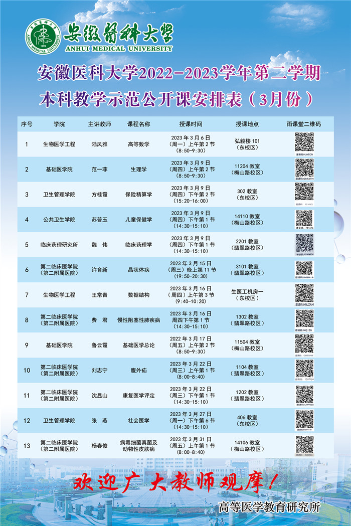 2022-2023学年第二学期本科教学示范公开课安排表(3月份)