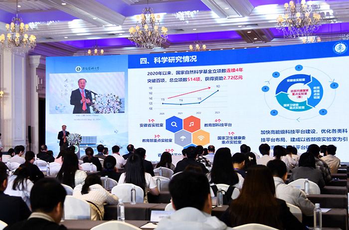 会上,学校优秀学科带头人代表陶芳标教授、校内杰出人才代表王华教授、学校引进人才代表许尹教授分享了结缘安医大、奋斗安医大和加盟安医大的亲身经历与感受。聂煜博士作为参会青年学者代表发言,分享了向往在安医大这片土地上成长发展的愿景。第一附属医院、第二附属医院、基础医学院、生物医学工程学院主要负责人代表学校直属附属医院和学院进行了宣讲。