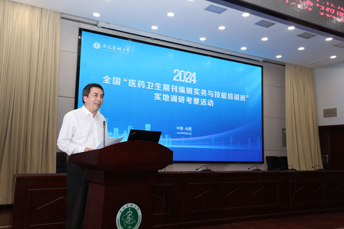 吕雄文代表学校对中国期刊协会医药卫生期刊分会领导及全国“医药卫生期刊编辑实务与技能培训班”学员的到来表示欢迎,并介绍了学校的历史沿革、办学特色、近年来发展情况,以及校内12种学术期刊建设取得的成绩。他指出,医药卫生期刊是学术交流的重要平台,学校学术期刊的发展不仅是学校学术展示的重要窗口,更是衡量学校学术整体实力以及服务水平的重要指标。希望以此次调研交流活动为契机,深化医药卫生期刊之间的交流合作,共同推动医药卫生领域的学术繁荣和科技进步。
