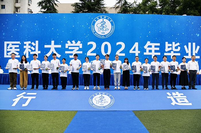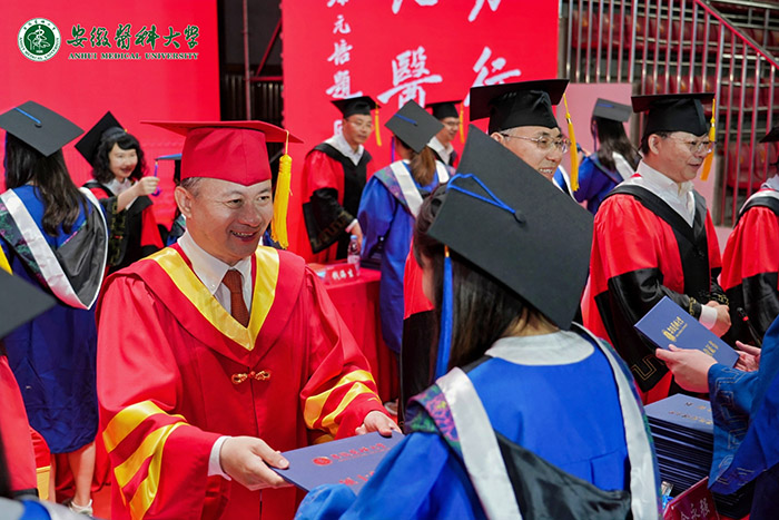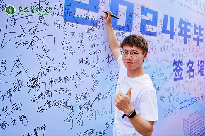 “同学们,请转头看看你们周围的同学、朋友,他们都是你们医学之路上坚实的伙伴,而在安医一起奋斗的日子会是你们宝贵的回忆。”夏强表示,很庆幸在安医遇上了相守一生的爱人和一群志同道合的朋友,他也希望学弟学妹们在毕业后仍能携手并进,于成功之际互享喜悦,于迷茫之际互相勉励,于困难之际守望相助。